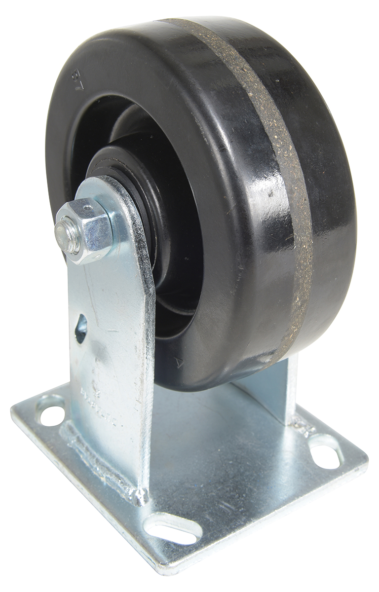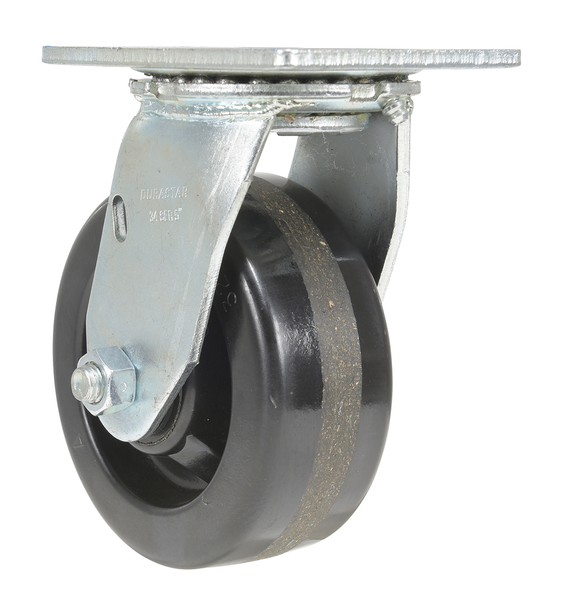 Phenolic wheels have a high resistance to impact damage, while providing protection for floors in commercial and industrial settings. Resistant to water, oil, and grease. It is also spark resistant and operates in a wide temperature range. Black tread color. Wheel core is phenolic. 100 Shore A.