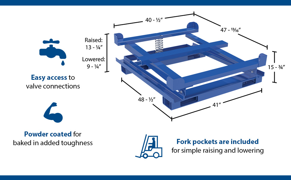 IBC-TLT-FPL IBC-TLT-FPLSteel Intermediate Bulk Container Tilt Stand with Fork Pockets and Adjustable Legs 48-1/2 In. x 49-1/2 In. 4400 Lb. Capacity BlueUniform Capacity (lb.): 4,400