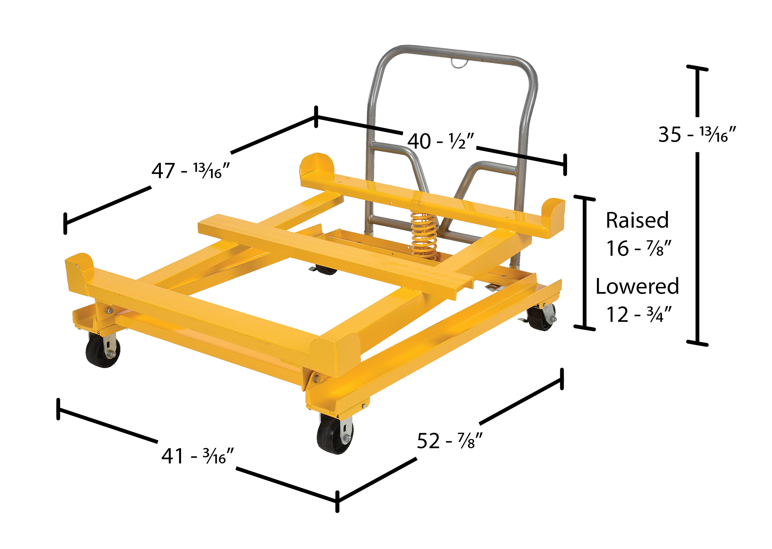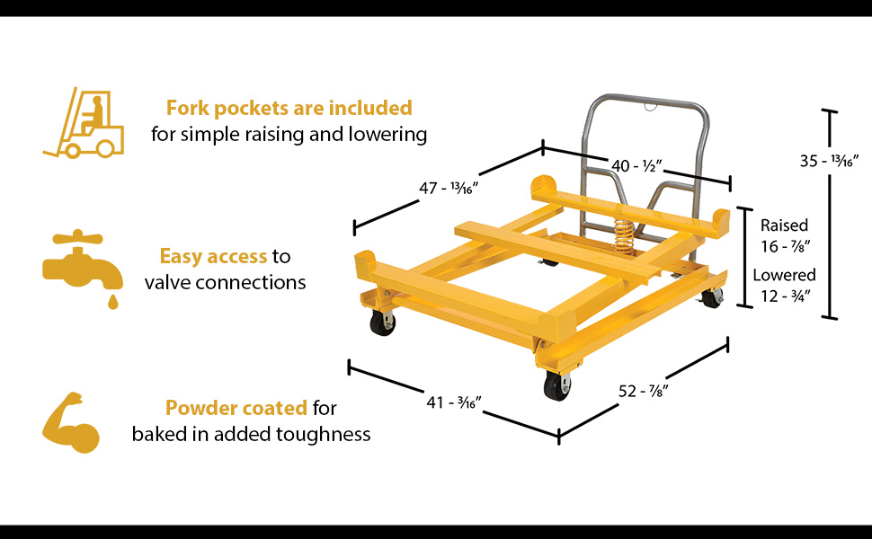 IBC-TLT IBC-TLTSteel Intermediate Bulk Container Tilting Cart 53-3/8 In. x 35-13/16 In. 4400 Lb. Capacity YellowUniform Capacity (lb.): 4,400