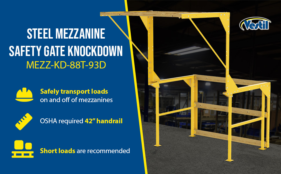 MEZZ-KD-88T-93D-A MEZZ-KD-88T-93D-AAluminum Knockdown Mezzanine Safety Gate 42-7/8 In Handrail Height SilverHandrail Height: 42-7/8"
