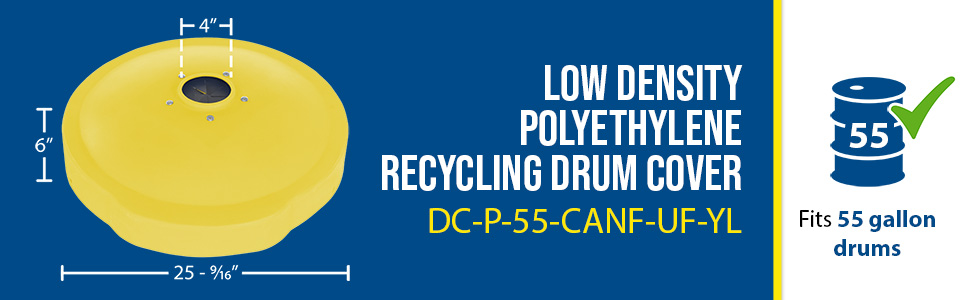 DC-P-55-CANF-UF-YL DC-P-55-CANF-UF-YLLow Density Polyethylene Drum Recycling Lid Universal 55 Gallon YellowOverall Diameter (in.): 24-5/8