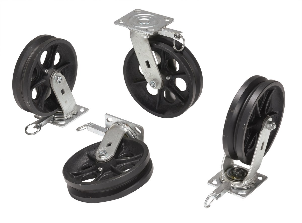 Cast Iron Swivel V-Groove Casters With 4-Position Lock 8 In. x 2 In. For Aluminum Gantry Crane Models