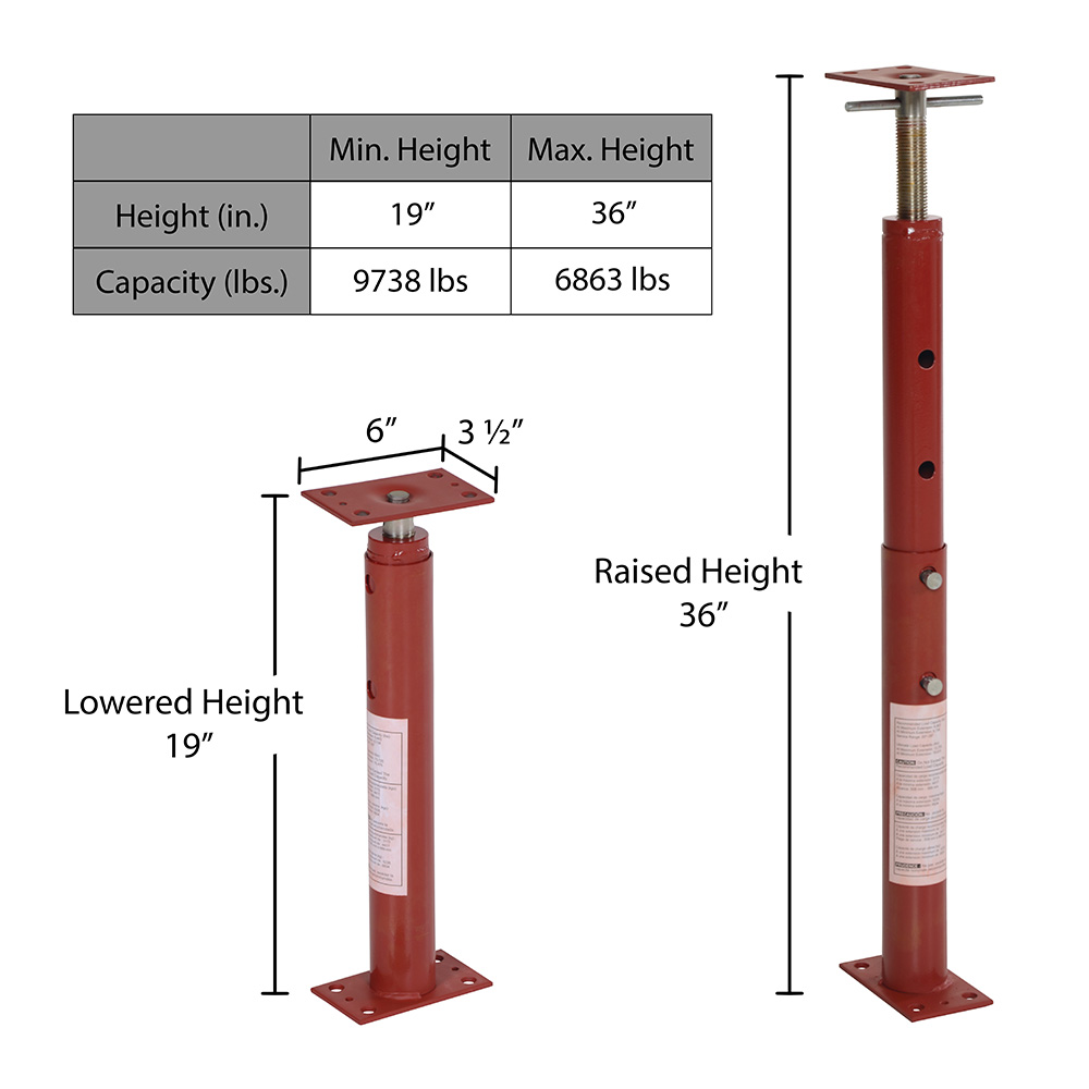 Height Minimum/Maximum (in.): 19 to 36 Minimum Height Capacity (lb.): 9738 Maximum Height Capacity (lb.): 6863