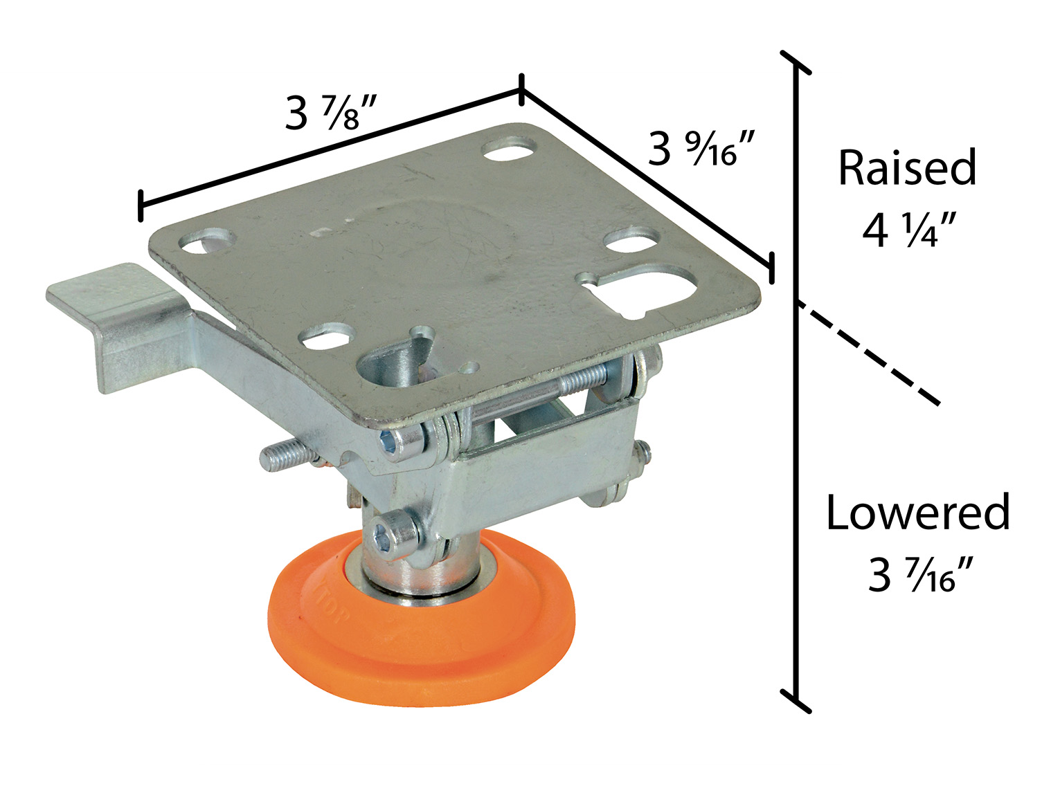 Lowered Height (in.): 3-7/16 Raised Height (in.): 4-1/4 Foot Pad Diameter (in.): 2-9/16