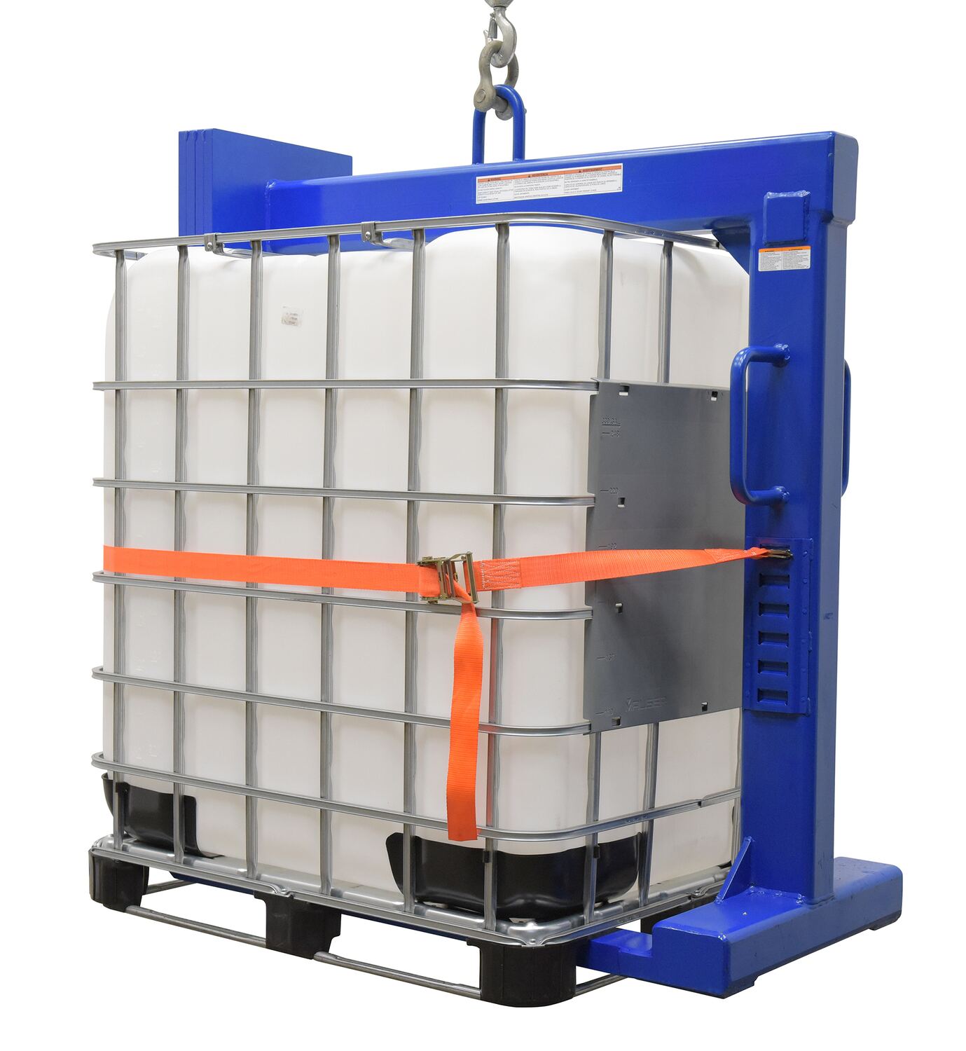 Give your products more security with the addition of the optional tie down track. The track is constructed of steel and includes six slots, allowing the user to position the (included) strap at varying heights. The design minimizes set up time, while increasing user safety. With the track welded to the vertical post of the pallet lifter, straps can then be quickly secured to the track and around many products.