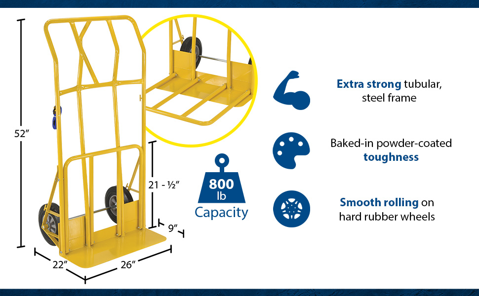 HTWL-800-HR HTWL-800-HRSteel Hand Truck Wide Load Hard Rubber Wheels 800 Lb. Capacity YellowUniform Capacity (lb.): 800