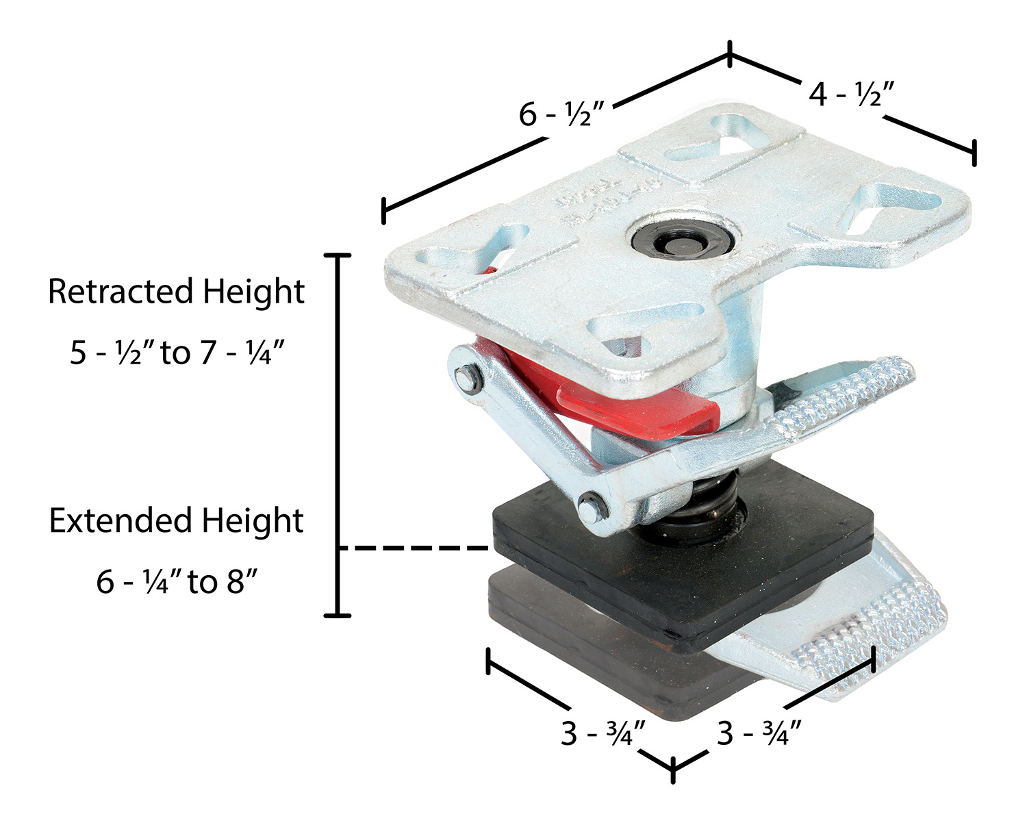 FL-ADJ-810 FL-ADJ-810Steel Adjustable Floor Lock 8-1/4 to 11-1/2 In. Height SilverUsed with Caster Size (in. - in.): 6 to 8