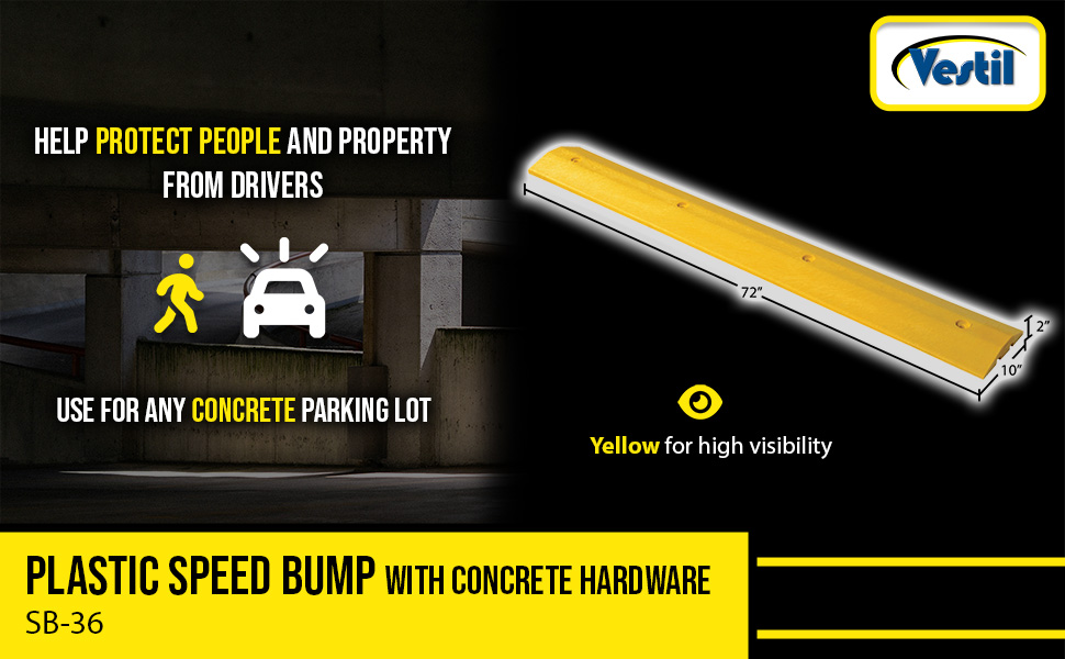SB-36 SB-36Plastic Speed Bump Concrete Hardware 72 In. x 10 In. x 2 In. YellowCompression Strength Per Square Inch (lb.): 3200