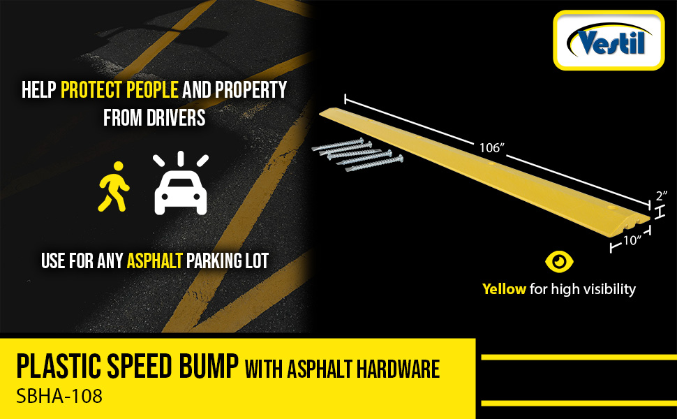 SBHA-108 SBHA-108Plastic Speed Bump Heavy Duty Asphalt Hardware 106 In. x 10 In. x 2 In. YellowCompression Strength Per Square Inch (lb.): 3200
