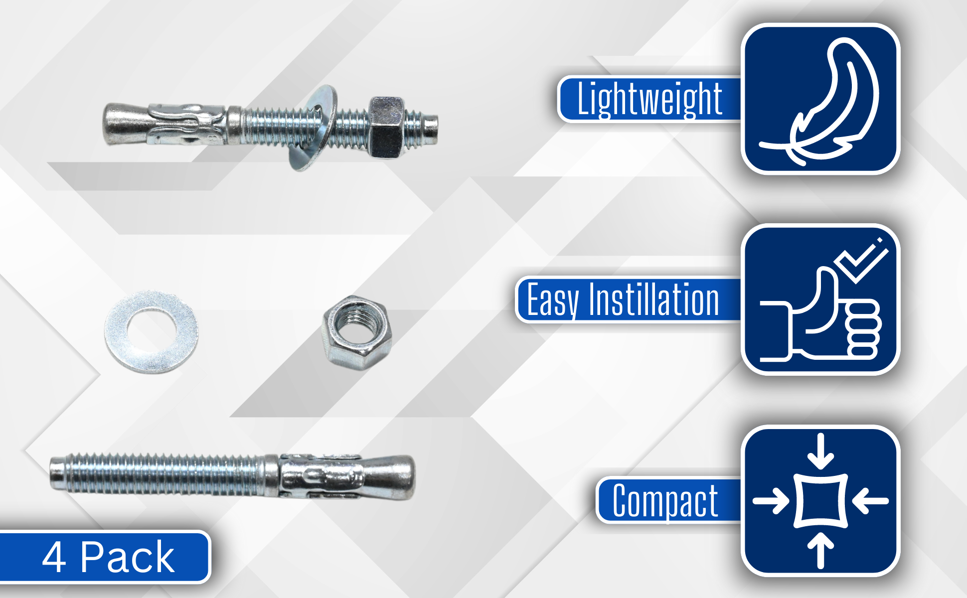 | Steel Concrete Sleeve Anchor Bolts 4 Pack 3/8 In. x 3 In. Silver | Package (qty.): 4 Sleeve Length (in.): 1 | 2 |