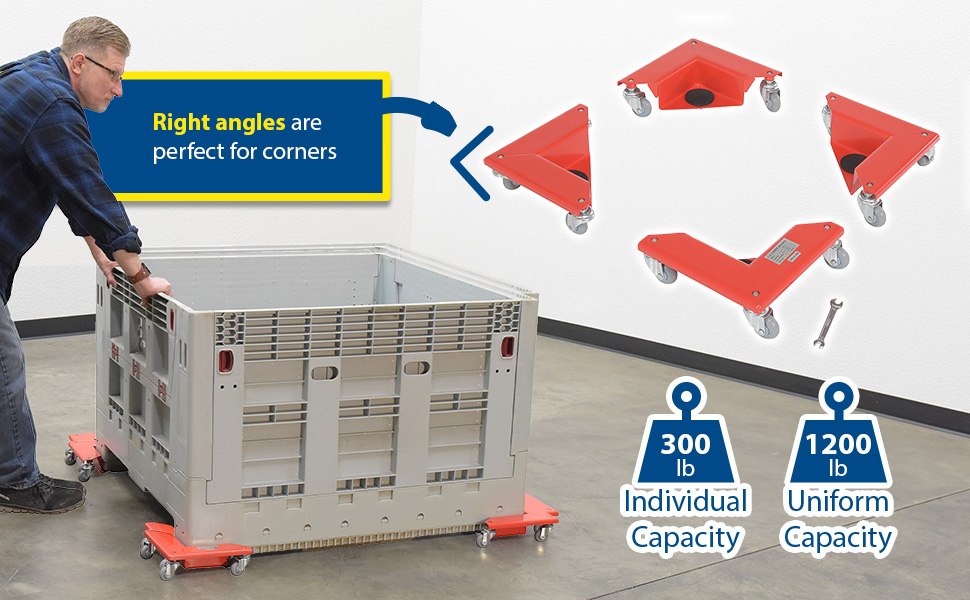 CMD-S-300-4PK CMD-S-300-4PKSteel Corner Mover Dolly 4 Pack 300 Lb. Capacity RedUniform Capacity, Set (lb.): 1200
