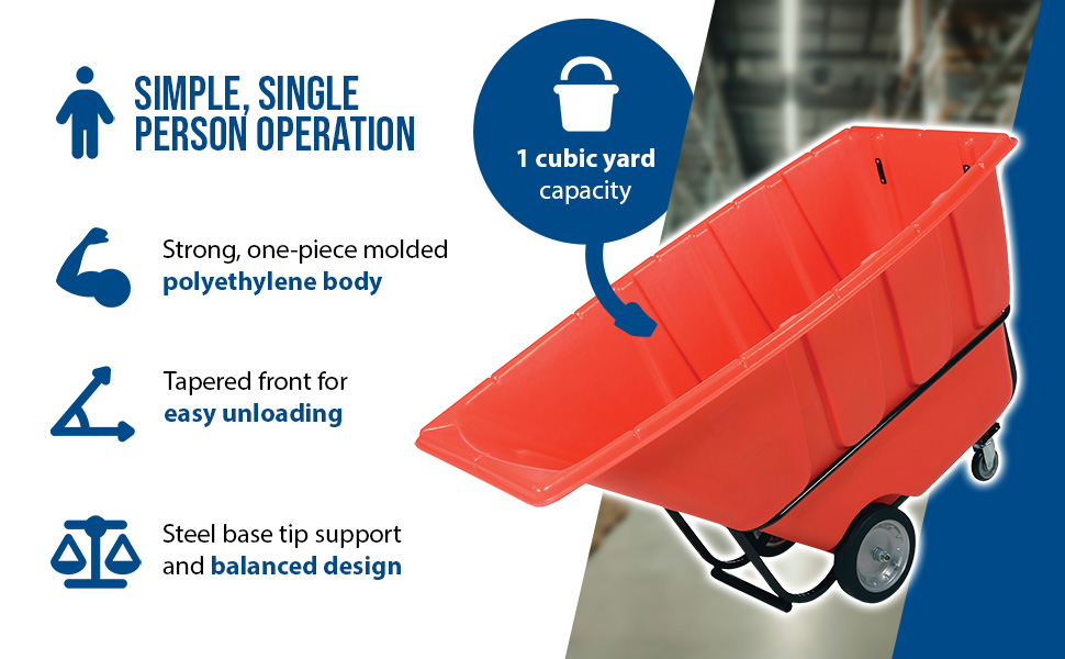 TDT-100-HD-RED TDT-100-HD-REDPlastic Heavy Duty Tilt Truck 1 Cubic Yard 2100 Lb. Capacity RedUniform Capacity (lb.): 2100
