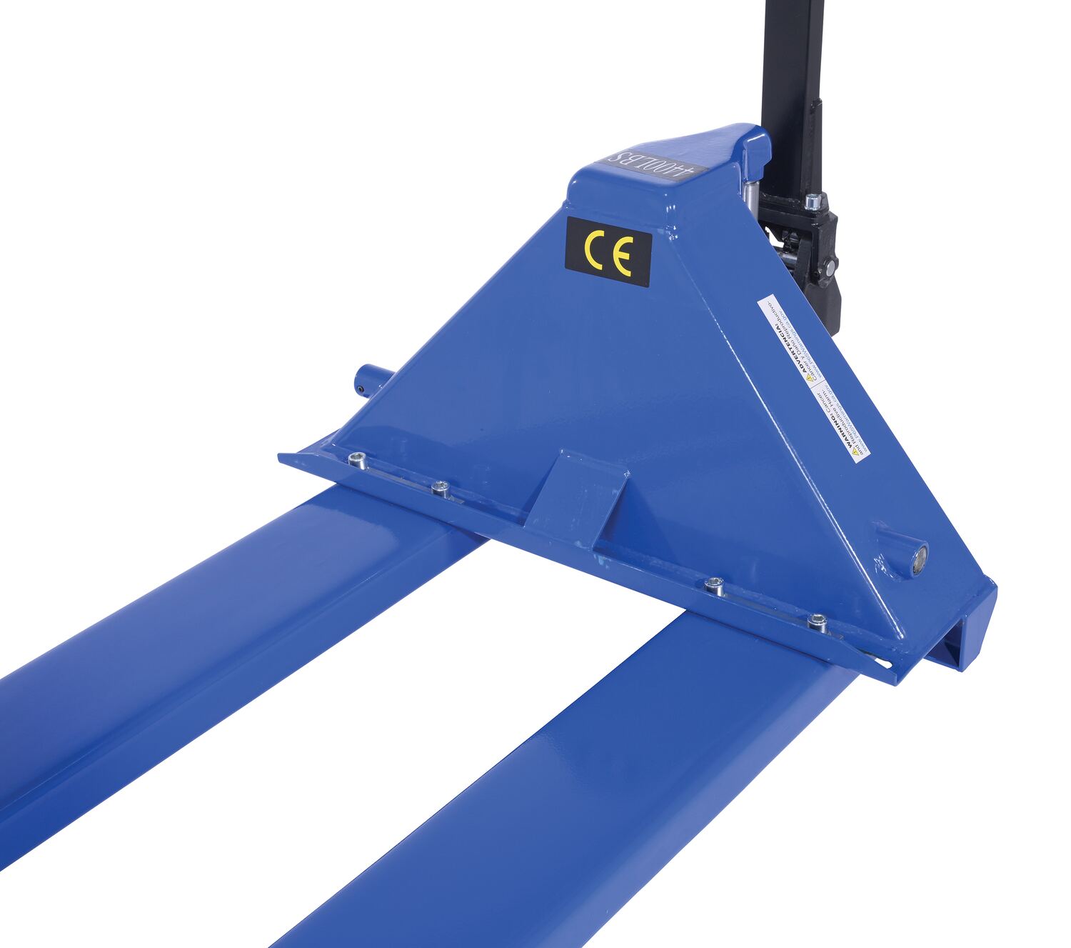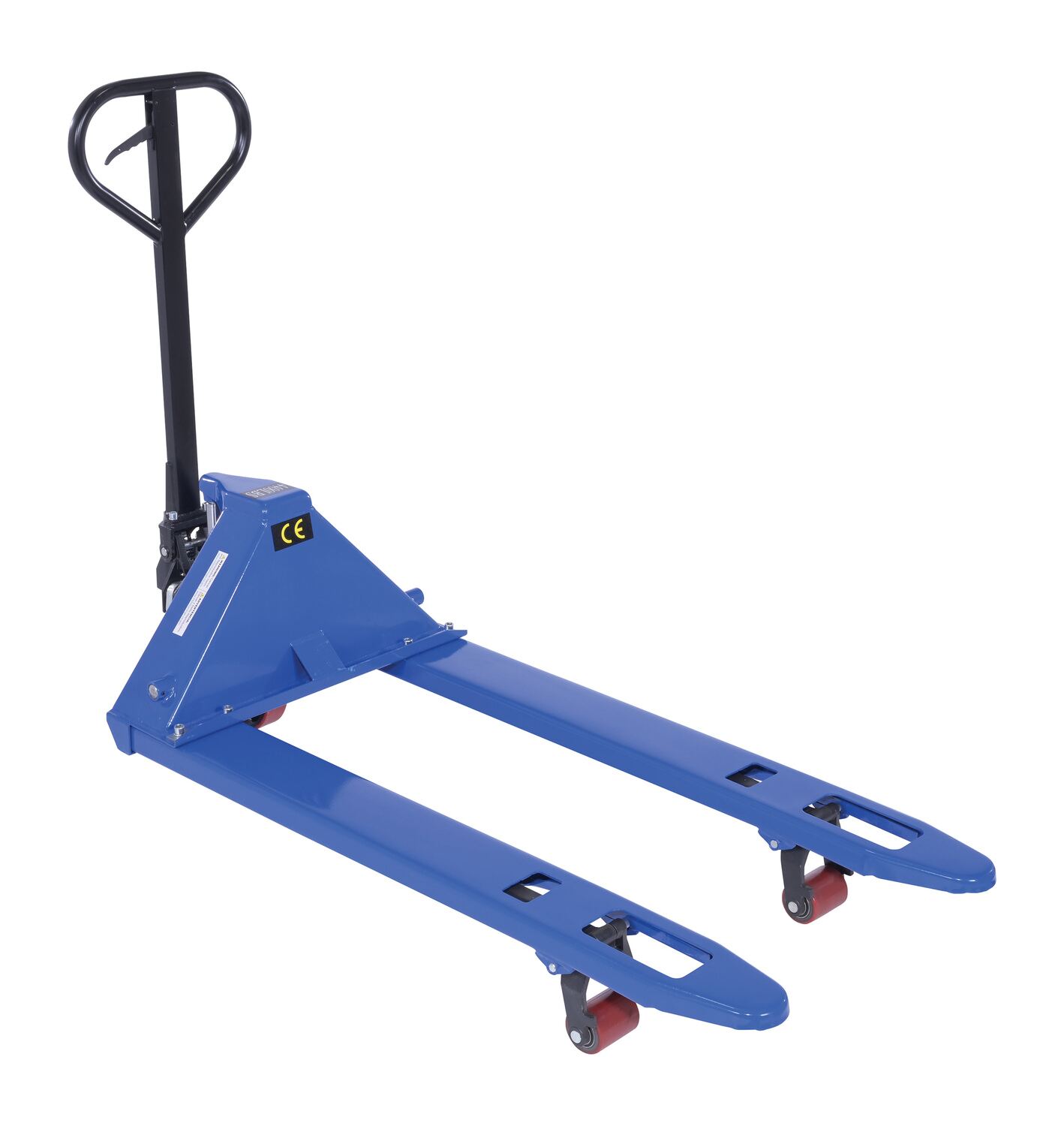 A hydraulic pallet truck with adjustable forks makes moving heavy loads a simple task. The open design is also excellent for performing any preventative maintenance, with all parts being easily accessible. With a robust steel frame and a unique chassis assembly, this pallet truck is built to last! A hydraulic hand pump mechanism makes the lifting and lowering process, quick and easy. To limit abrasions or scratches the truck is finished with a durable baked in powder coat.