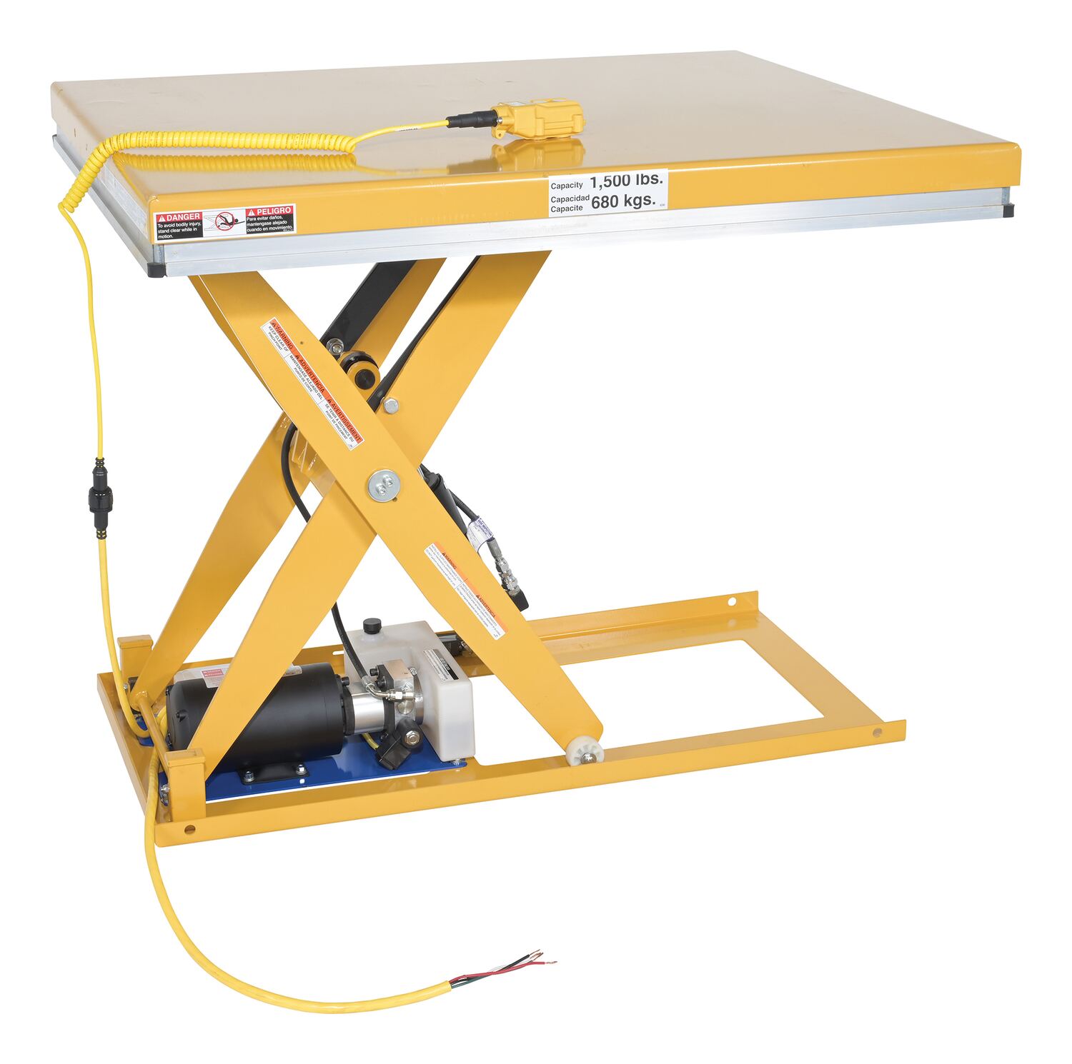 EHLT-WSI-3248-1.5-36 EHLT-WSI-3248-1.5-36Steel Electric Hydraulic Scissor Table 32"x48" With Internal Power Unit 1,500 Lb. Capacity YellowUniform Capacity (lb.): 1,500
