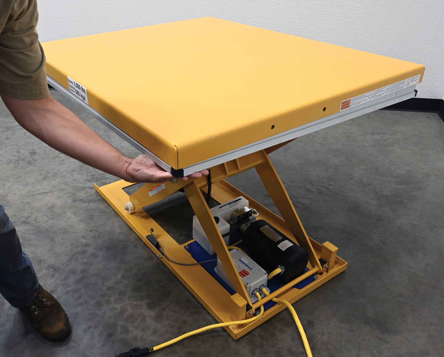 EHLT-WS-3248-1.5-36 EHLT-WS-3248-1.5-36Steel Work Station Electric Hydraulic Scissor Table 32 In. x 48 In. 1500 Lb. Capacity YellowUniform Capacity (lb.): 1,500