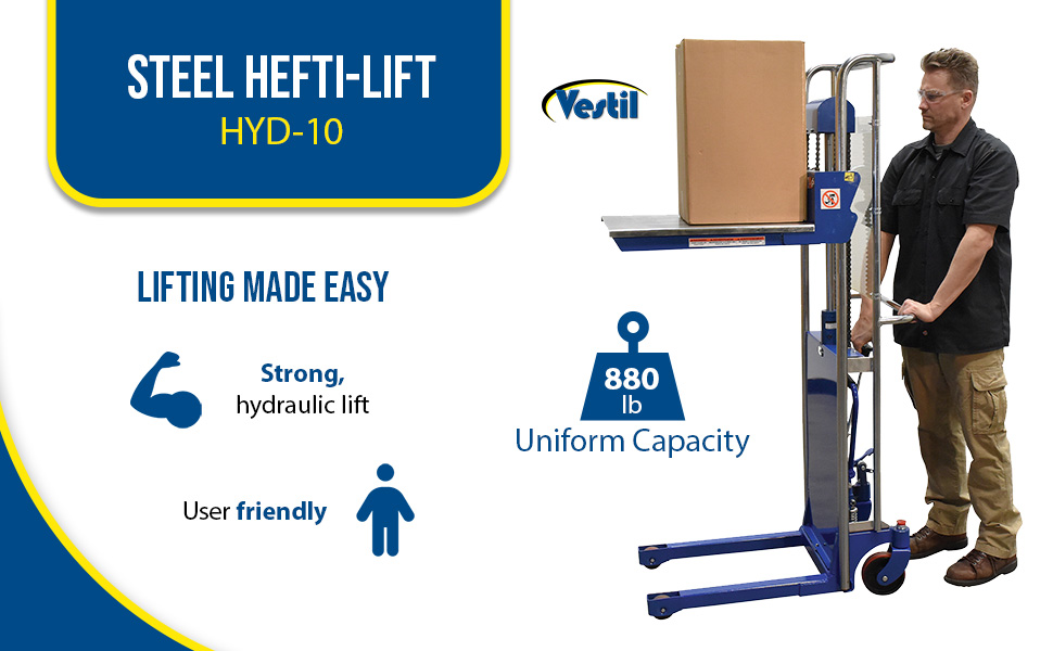 HYD-10 HYD-10Steel Portable Foot Pump Hefti-Lift 41 In. x 69 In. 880 Lb. Capacity BlueUniform Capacity (lb.): 880