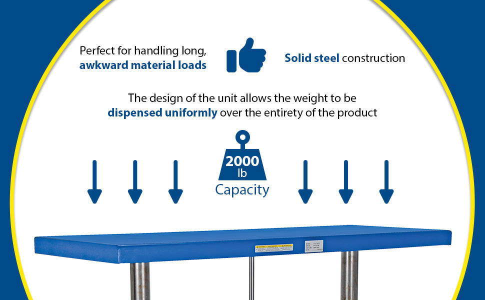 LDLT-2072 LDLT-2072Steel Ergonomic Long Deck Cart 20 In. x 72-1/4 In. x 49 In. 2,000 Lb. Capacity BlueUniform Capacity (lb.): 2,000