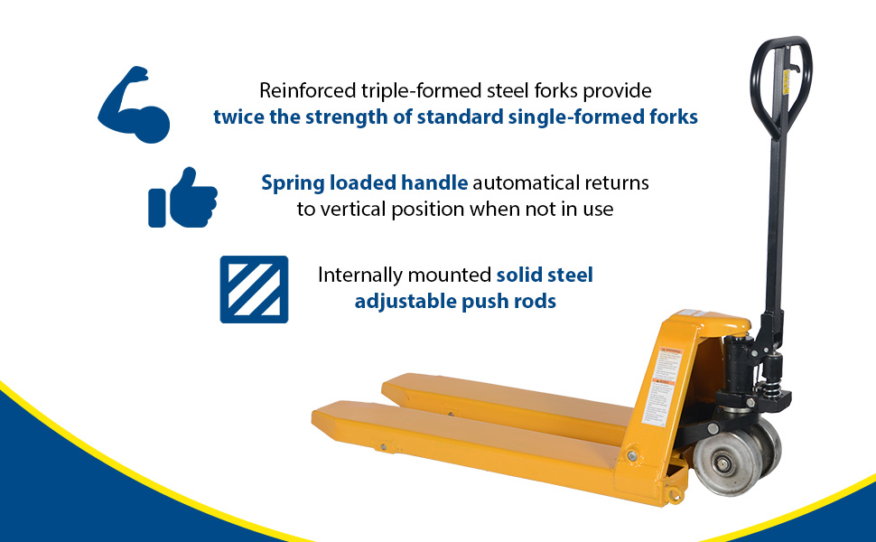 | Steel Full Featured Pallet Truck 27 In. x 48 In. 5500 Lb. Capacity Yellow | Uniform Capacity (lb.): 5,500 Fork Width/Length (in.): 7 x 48 | 210 |