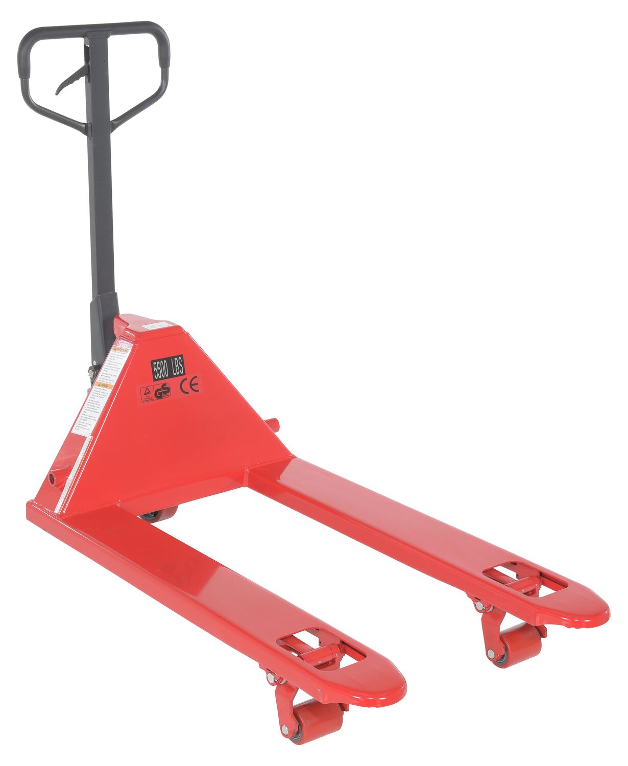 | Steel Economic Pallet Truck with Nylon Wheel 61 In. x 27 In. x 48 In. 5500 Lb. Capacity Red | Uniform Capacity (lb.): 5,500 Fork Width/Length (in.): 7 x 48 | 227 |