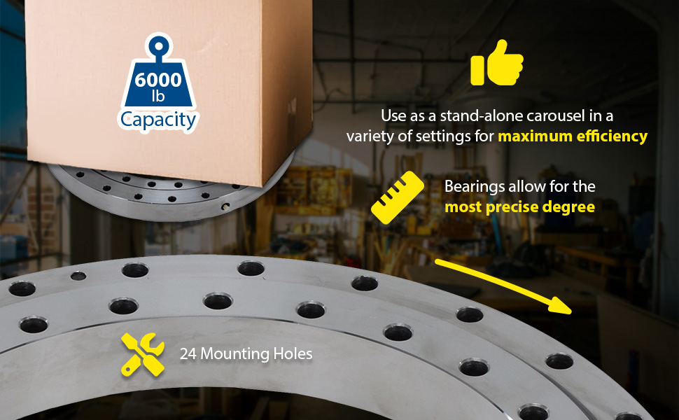 The Precision Turret Bearing is ideal for consistent turntable maneuvering. The bearing is able to meet the most precise degree, when they matter most. The unit can be used as a stand-alone carousel in a variety of manufacturing settings. With a lightweight construction the bearing is easily transported and turned softly during procedure.