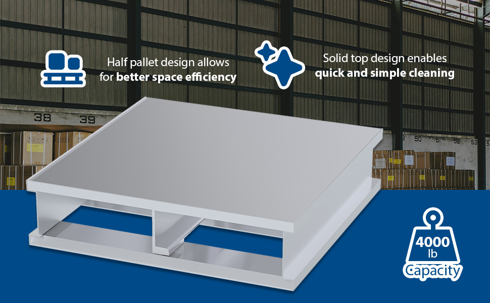 | Aluminum Heavy Duty Solid Top Half Pallet 24 In. x 48-1/8 In. x 6 In. 4000 Lb. Capacity Silver | Uniform Capacity (lb.): 4,000 Overall Width (in.): 48-1/8 | 36 |