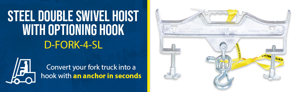 D-FORK-10-SL D-FORK-10-SLSteel Double Swivel Hoist Optioning Hook 3 In x 23 In x 21-5/8 In 10000 Lb. Capacity SilverUniform Capacity (lb.): 10,000