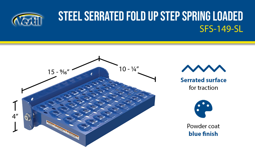 SFS-149-SL SFS-149-SLSteel Serrated Fold Up Step Spring Loaded 10-1/4 In. x 15-9/16 In. x 4 In. 350 Lb. Capacity BlueUniform Capacity (lb.): 350