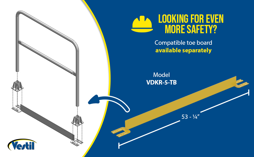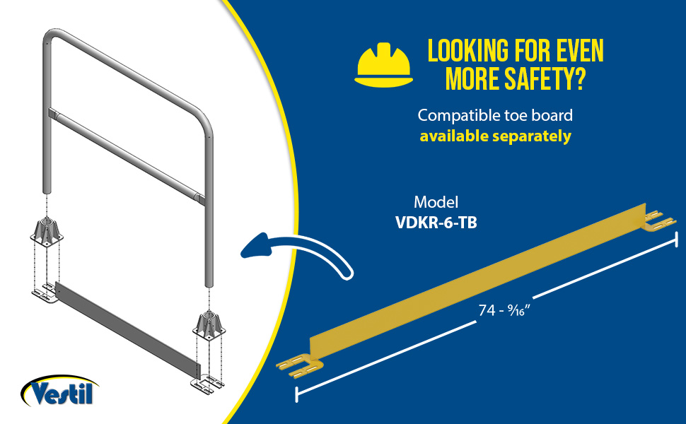 VDKR-2-TB VDKR-2-TB Steel Toe Board for Pipe Safety Railing 2 Ft. Length Yellow 90 Days Limited Warranty 7
