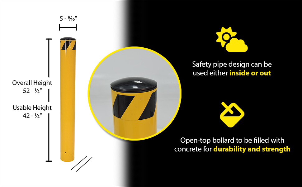 BOLPP-48-5.5 BOLPP-48-5.5Steel Pour In Place Bollard 48 In. x 5-1/2 In. YellowUsable Height (in.): 48-1/2