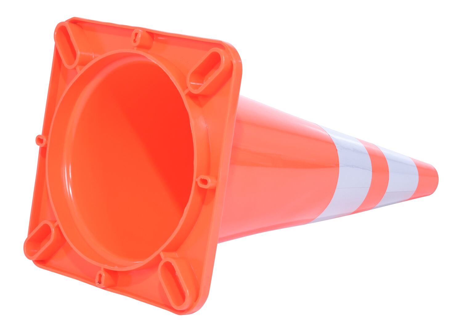 These durable all weather cones are constructed from 100% PVC for long life. Their construction prohibits fading, cracking. Will retain its shape for years of reliable service. All models feature one piece mold except model TC-30, which features a removable weighted bottom. High-visibility orange in color. Suffix -2R features two reflectors around the traffic cone.