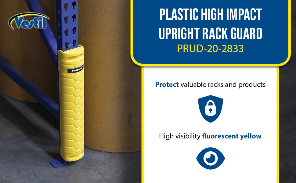 PRUD-20-2833 PRUD-20-2833Plastic High Impact Upright Rack Guard 3 In. x 3-5/8 In. x 19-1/4 In. YellowFits Frame Width (in.): 2-5/8 to 3-1/4