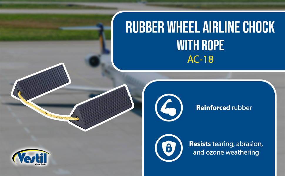 AC-18 AC-18Rubber Airline Wheel Chock 6 In. x 18 In. BlackWheel Chock Connection: Rope