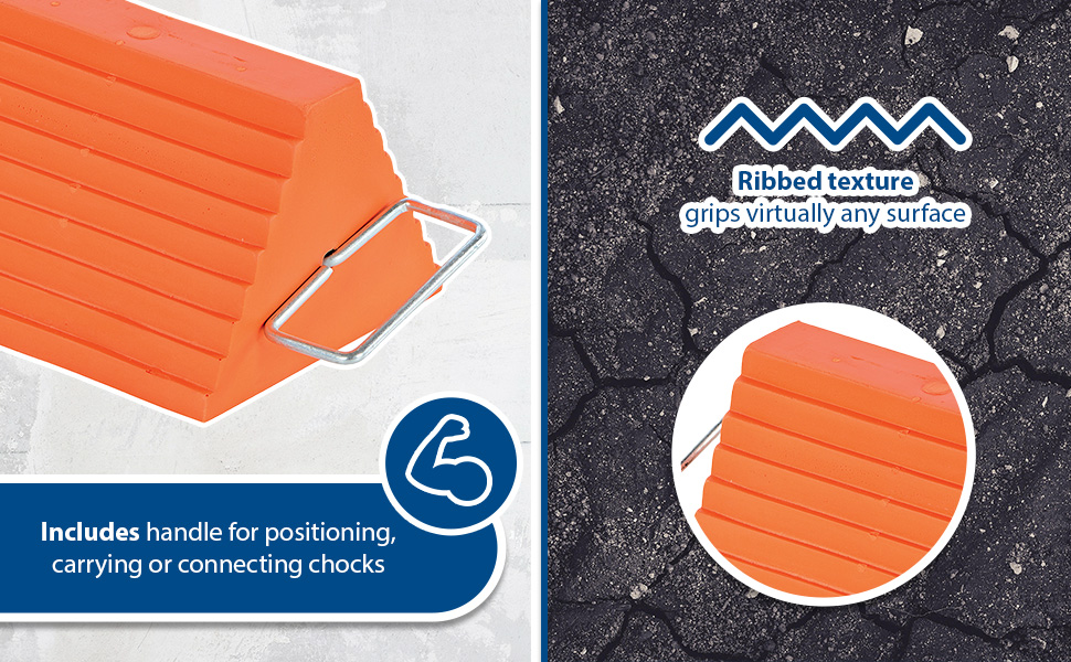 | Urethane Standard Wheel Chock with Handle 6 In. x 9-1/2 In. x 8 In. 20 Ton Capacity Orange | Uniform Capacity (tons): 20 Chock Style: Standard Handle | 4 |