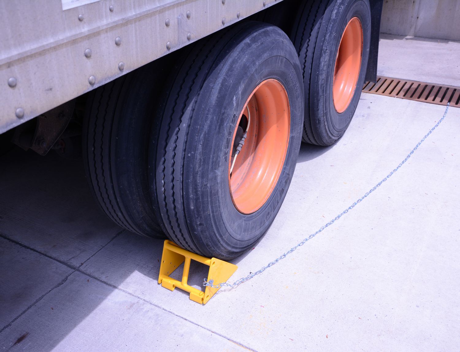 • FAB-8: The Steel Wheel Chock features a grip slot for easy pick up and positioning. Textured tread plate to provide maximum traction. Bright color for clear visibility.