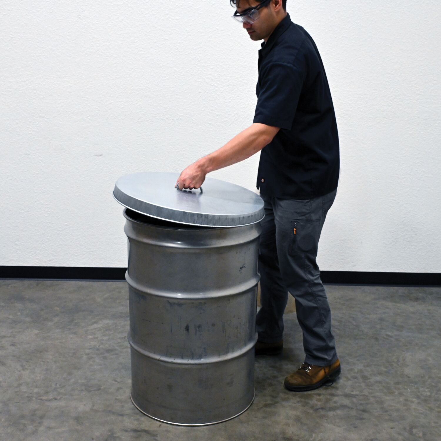 Galvanized Steel Drum Covers [Prop 65 Warning] for 55 gallon drums. Manufactured from 26 gauge galvanized steel. Cover drum tops for added protection. Perimeter rim is beaded for safety.