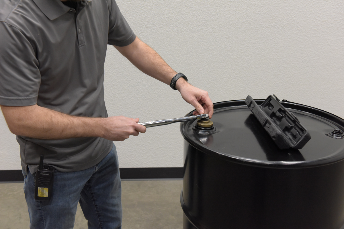 Reversible ratchet-head style torque wrench. Easy to set torque setting - wrench 'clicks' when setting is reached. Knurled handle grip surface for extra grip when using. Use with bung sockets to comply with UNC standards.