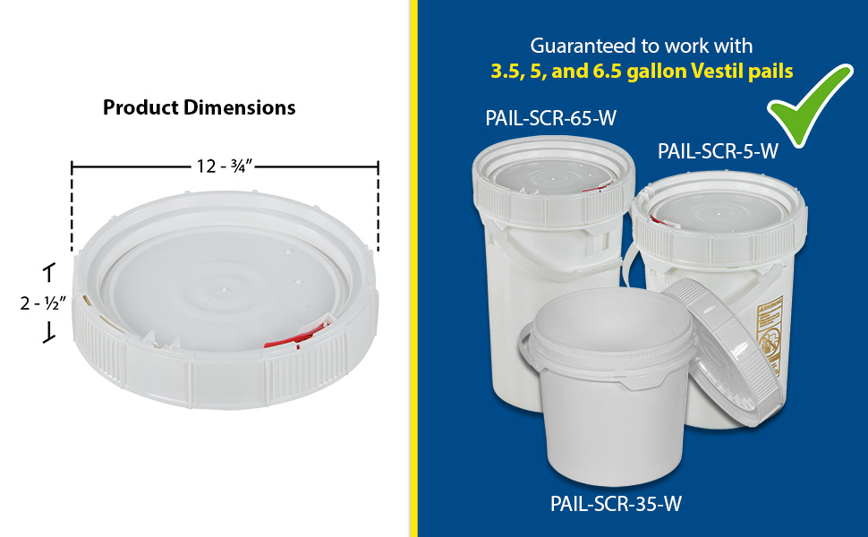 LID-SCR LID-SCRPolyethylene 3-1/2,5 and 6-1/2 Gallon Lid for Screw Top Pail WhiteAccommodating Pail Size (gal.): 3.5 , 5, 6.5