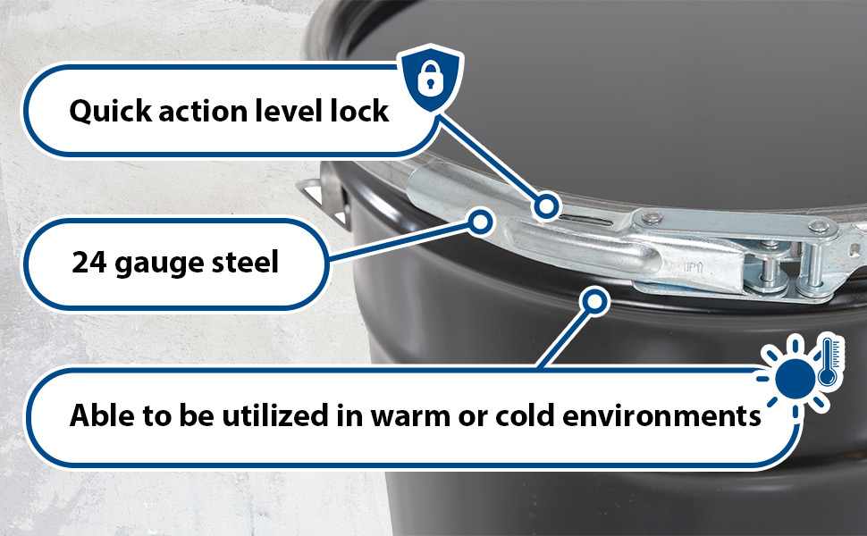 LID-STL-LL-UN LID-STL-LL-UNSteel UN Rated Lid And Lever Lock Combo For 5 Gallon Bucket BlackGauge: 24