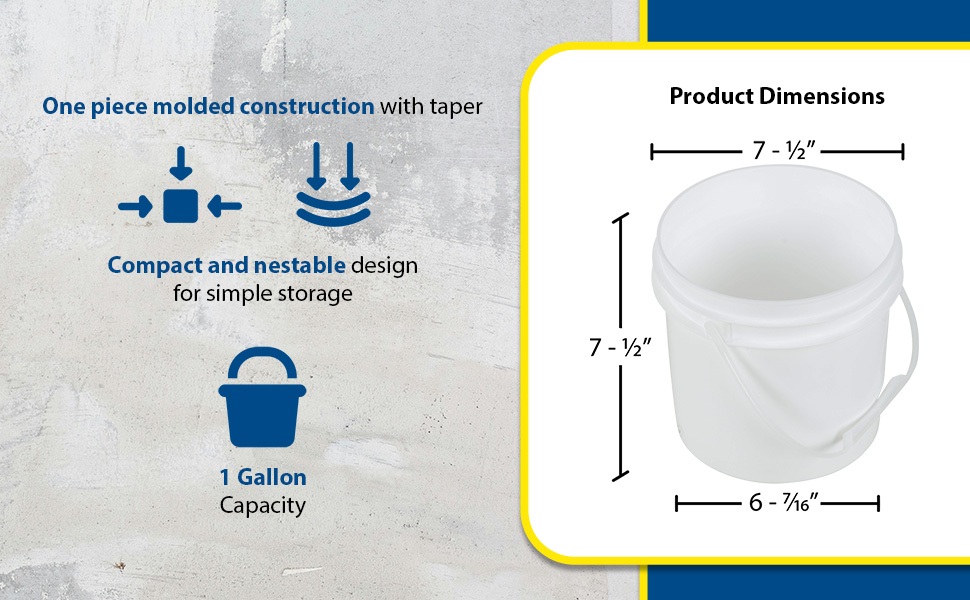 PAIL-1-PWP PAIL-1-PWPHigh Density Polyethylene Open Head Pail with Plastic Handle 7-1/2 In. x 7-1/2 In. x 7-1/2 In. 1 Gallon WhiteUniform Capacity (gal.): 1