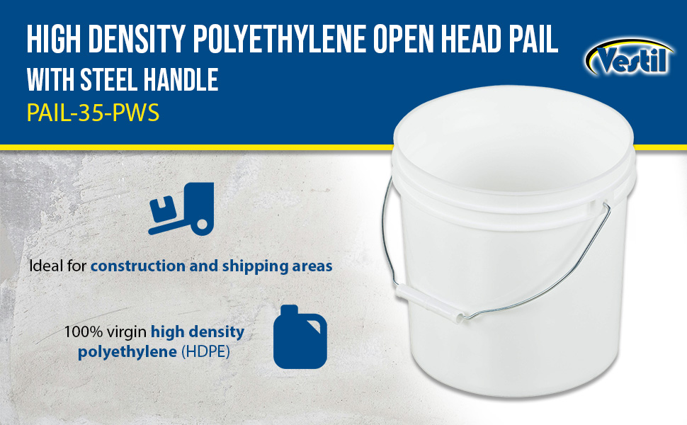 PAIL-35-PWS PAIL-35-PWSHigh Density Polyethylene Open Head Pail with Steel Handle 11-13/16 In. x 11-13/16 In. x 11-1/8 In. 3-1/2 Gallon WhiteUniform Capacity (gal.): 3.5