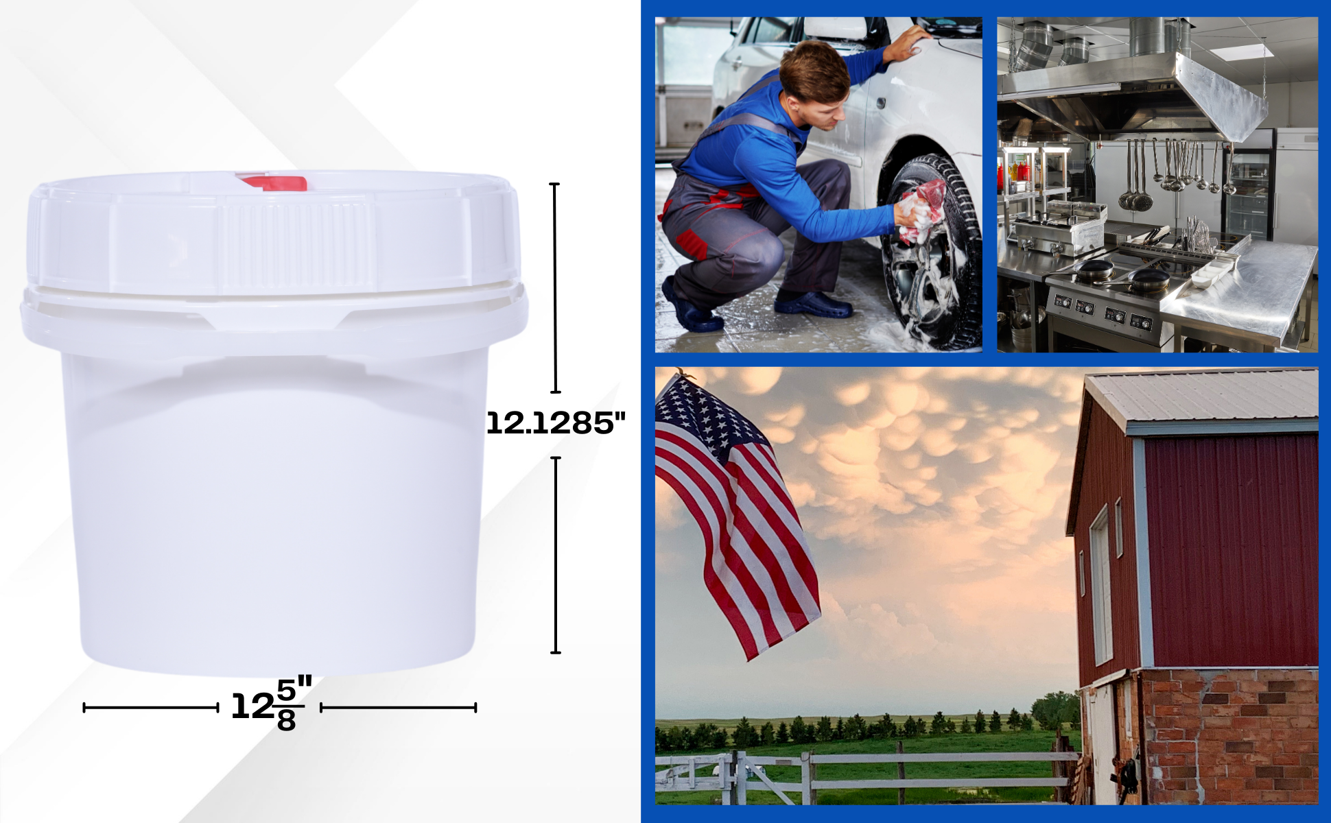 PAIL-SCR-35-W PAIL-SCR-35-WHigh Density Polyethylene Screw Top Pail and Lid 12-5/8 In. x 12-5/8 In. x 12-3/16 In. 3-1/2 Gallon WhiteUniform Capacity (gal.): 3.5