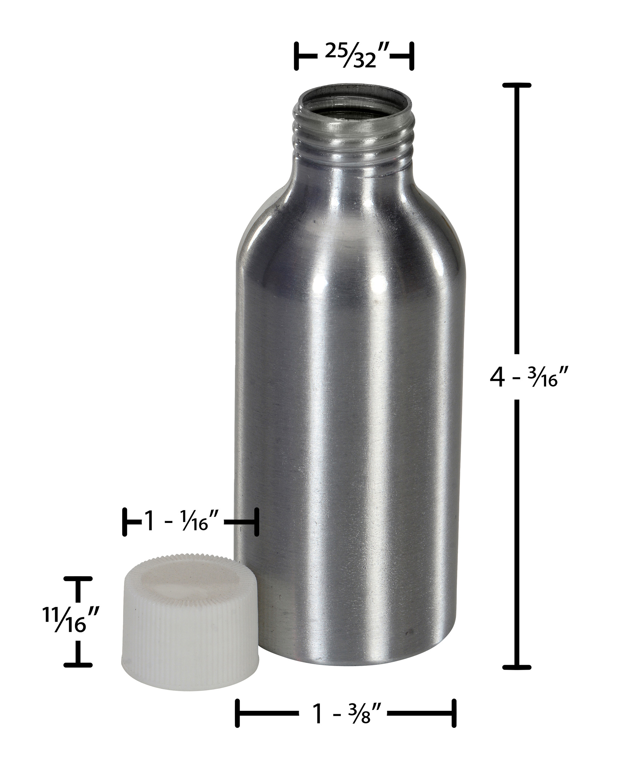 Aluminum bottles are lightweight and very rigid. Includes polypropylene (PP) threaded cap with polyethylene (PE) foam liner.