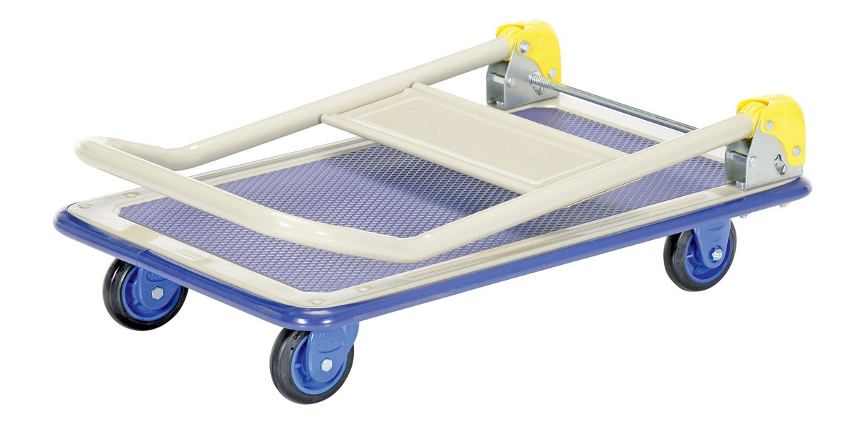 Manufactured from high quality steel. Durable pressed steel platform. Truck with a push/pull handle that folds for easy storage. Sturdy construction. Fitted with non-marking rubber protective buffer strip to protect walls and door frames when truck is in use. Non-slip PVC platform surface ensures maximum grip to eliminate movement of load when in transit. Optional front, rear, left, and right handles are available. Two (2) swivel and two (2) rigid low noise casters for sensitive environments and high quality double ball bearings. Double painted finish.