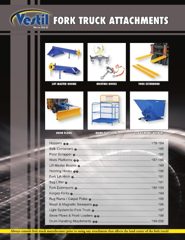 Always consult fork truck manufacturer prior to using any attachment that affects the load center of the fork truck!