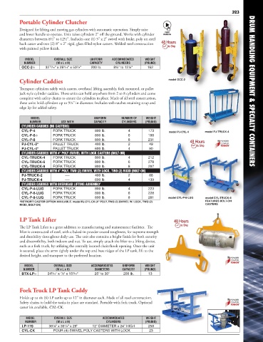 jack style cylinder caddies. These units can hold anywhere from 2 to 8 cylinders and come DRUM HANDLING EQUIPMENT & SPECIALTY CONTAINERS