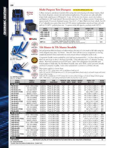 104                            Multi-Purpose Tote Dumpers          12V DC STD, OPTIONS ON PG. 108