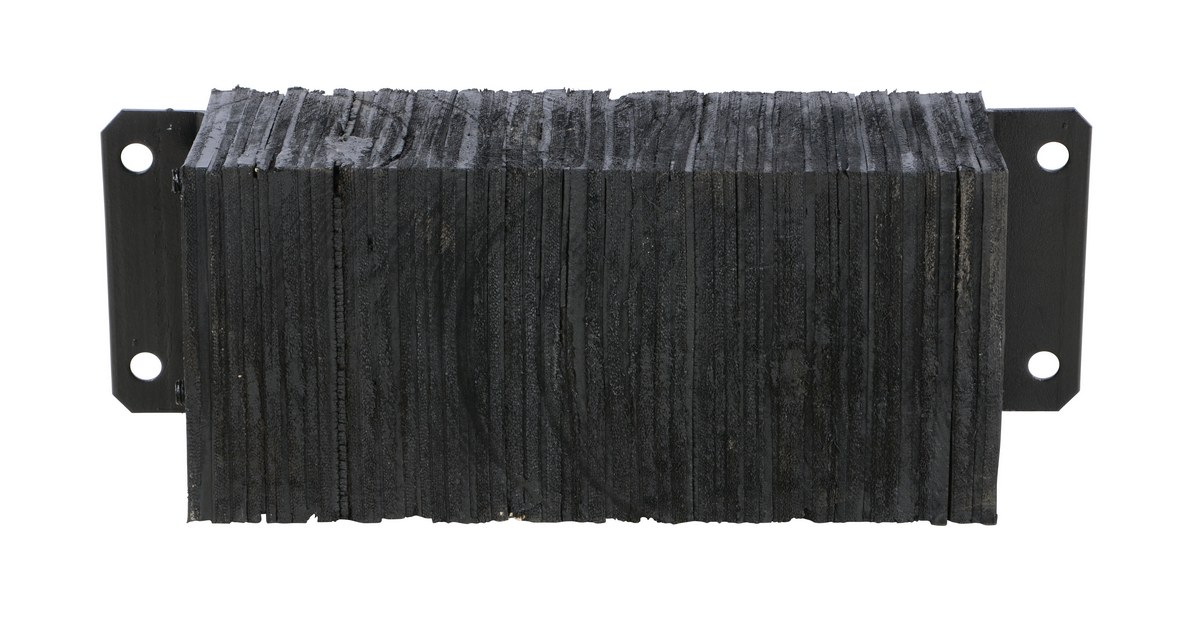 The laminated Dock Bumper provides durable, economical protection for loading docks and trailers. This unit is constructed of fabric reinforced rubber from recycled truck tires. The pads are laminated between painted structural angles and held together with steel tie rods. The width is bolt hole center to bolt hole center. Installation hardware sold separately.