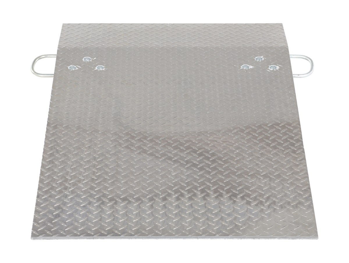 Aluminum Hand Truck Dock Plate 30 In. x 48 In. 500 Lb. Capacity SilverThis Aluminum Hand Truck dock plate is designed for use with two (2) wheel hand trucks. It is a convenient, safe, and easy way to access loading docks from trucks. This dock plate is lightweight and easily transported by just one person. The locking legs secure the plate for safe loading and unloading. Complete with bolt-on zinc plated carrying handles and locking legs.