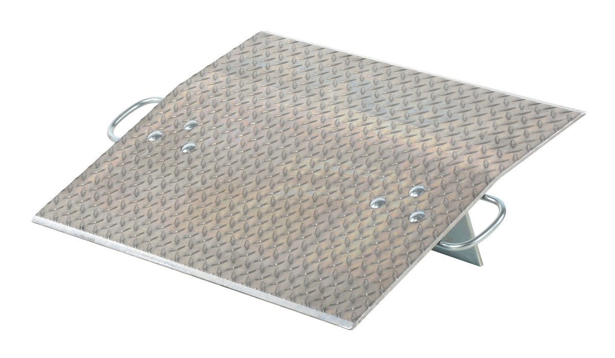 This Aluminum Hand Truck dock plate is designed for use with two (2) wheel hand trucks. It is a convenient, safe, and easy way to access loading docks from trucks. This dock plate is lightweight and easily transported by just one person. The tread plate surface ensures skid-resistant safe traction and the locking legs secure the plate for safe loading and unloading. Complete with bolt-on zinc plated carrying handles and locking legs.