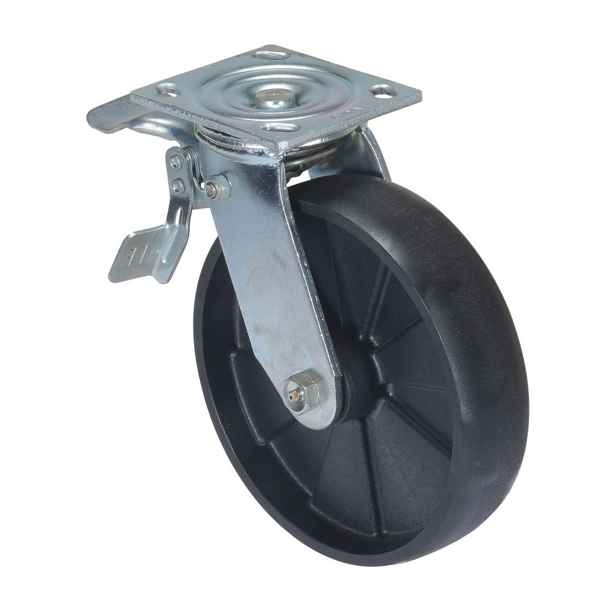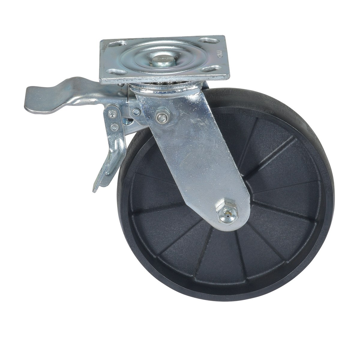 Glass Filled Nylon Total Locking Swivel Casters 8 In. x 2 In. For Steel Gantry Cranes 2,000 Lb. CapacityAluminum Gantry crane total locking caster set provides a number of benefits to an already worthwhile gantry crane. The durable construction generates a smooth roll with limited jostling. Simple to install with pre drilled mounting holes.